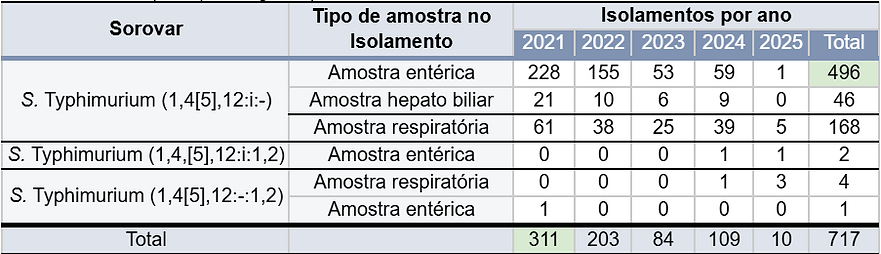 Table 2. Quantitative isolation of Salmonella Typhimurium in pigs between 2021 and 2025 in the main producing regions of Brazil.
